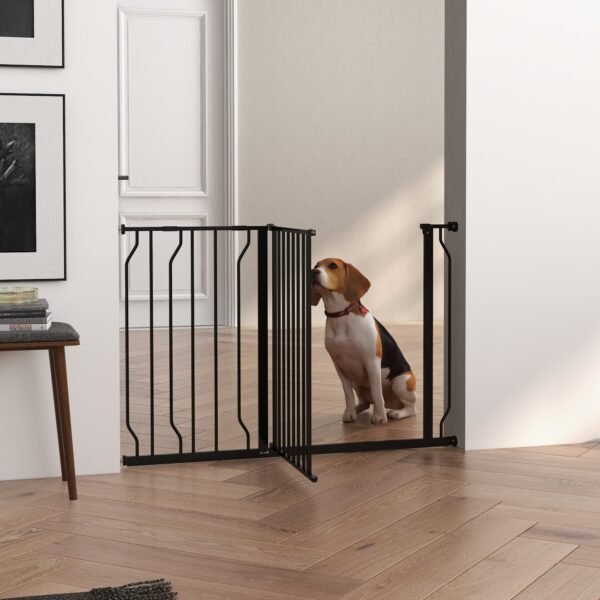 Need to keep pets away from certain places? This Catface tall dog gate does the job. Suitable for hallways, doorways and staircases, the puppy gate has an adjustable width of 29.5′- 45.3′ (75-115 cm), great for different sized openings. Made from robust steel, the stair gate for pets stays firmly upright when in use. It can also be pressure-mounted, making freestanding gate easy to set up; a safe and effective way to stop pets from going where they shouldn’t.