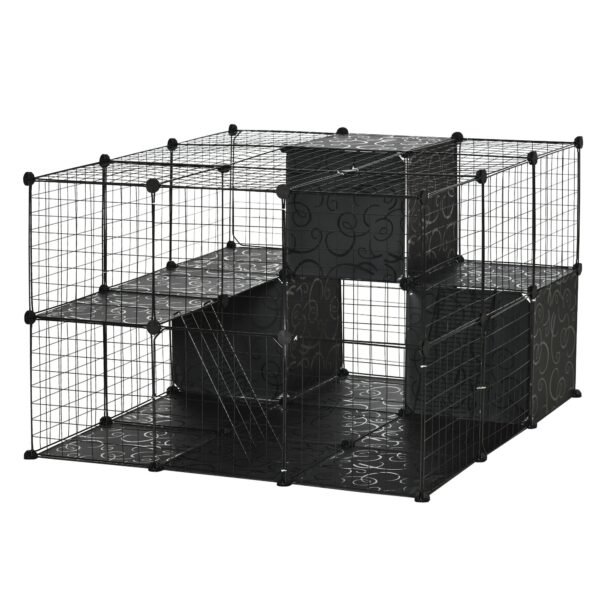 Give your pet a place of their own to rest and play with the Catface cage for small animals! The pet cage provides ample living and playing space for your pets to run around. The DIY design lets you create a cage for small animals and a storage rack. The pet playpen is made with metal wire to allow fresh air to pass through and keep your pet comfortable. Make transporting your pet and replenishing their food and water a breeze with 3 large doors on the cage. Suitable for rabbits, chinchillas and pet minks.