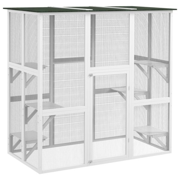 Check out our amazing outdoor cat cage from Catface! Allow your pet to enjoy the great outdoors without the danger of roaming free. Built on a robust wood frame that has been sealed with a pet-friendly, sealant, and fully enclosed with a stable wire mesh allowing your pet to be outside, without wandering freely. 6 platforms allow for your pet to climb and lounge when inside. The flat roof has been covered with asphalt to help with weather protection.